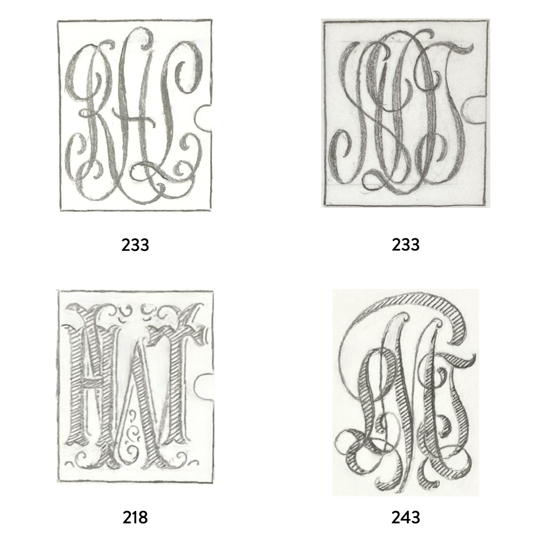 Left to Right: Block Monogram • Interlocking Monogram • Circle Monogram • Block Initials